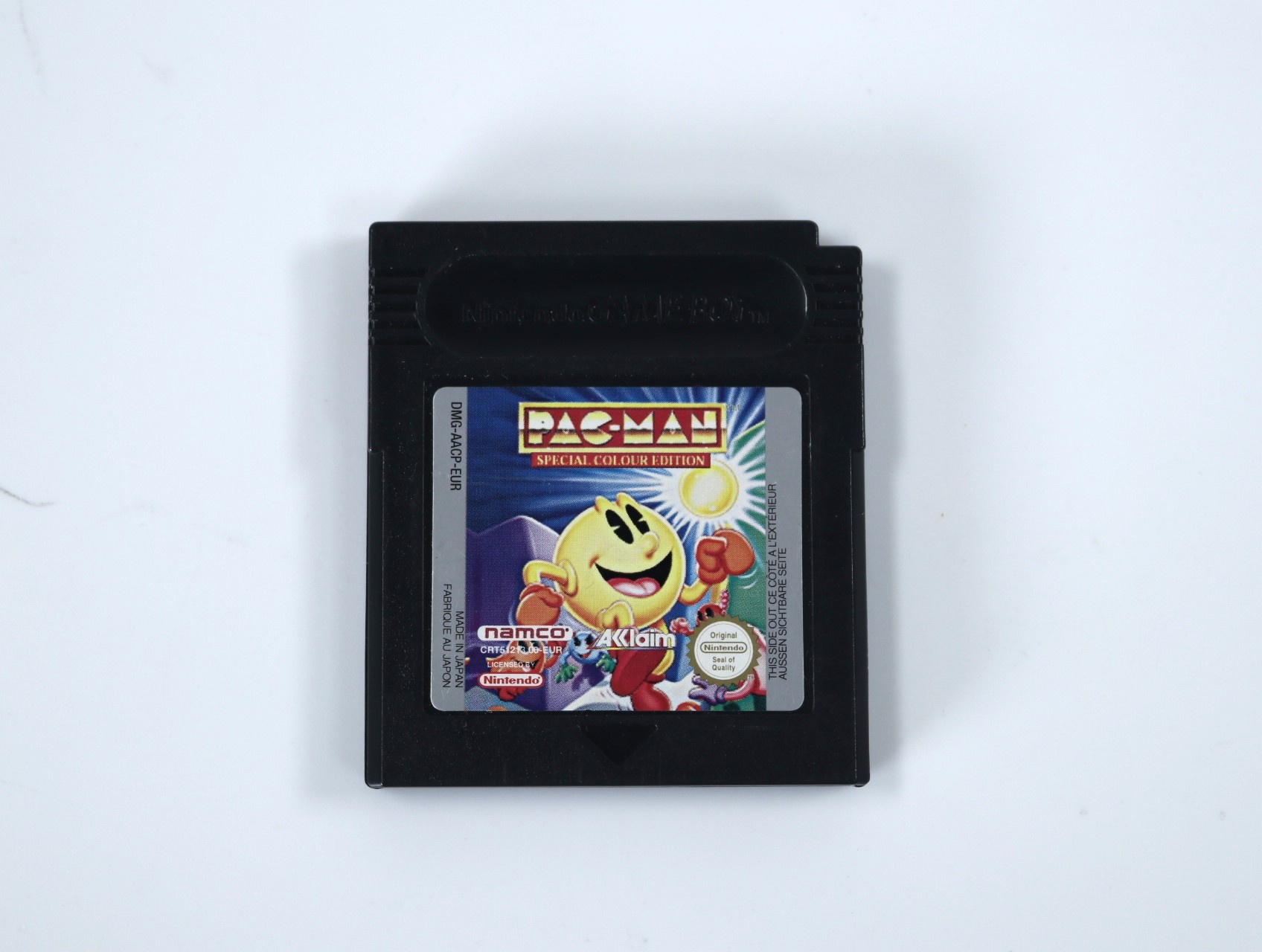 Beschrijving:Pac-Man: Special Color Edition is een arcade- en puzzelspel ontwikkeld en uitgegeven door Namco. In dit spel navigeer je Pac-Man door doolhoven, eet je stippen en ontwijk je spoken. De game bevat twee modi: de klassieke Pac-Man en de puzzelmodus Pac-Attack, waarbij je vallende blokken moet stapelen om lijnen te wissen. De kleurrijke graphics en eenvoudige bediening maken het ideaal voor korte speelsessies op de Game Boy Color.