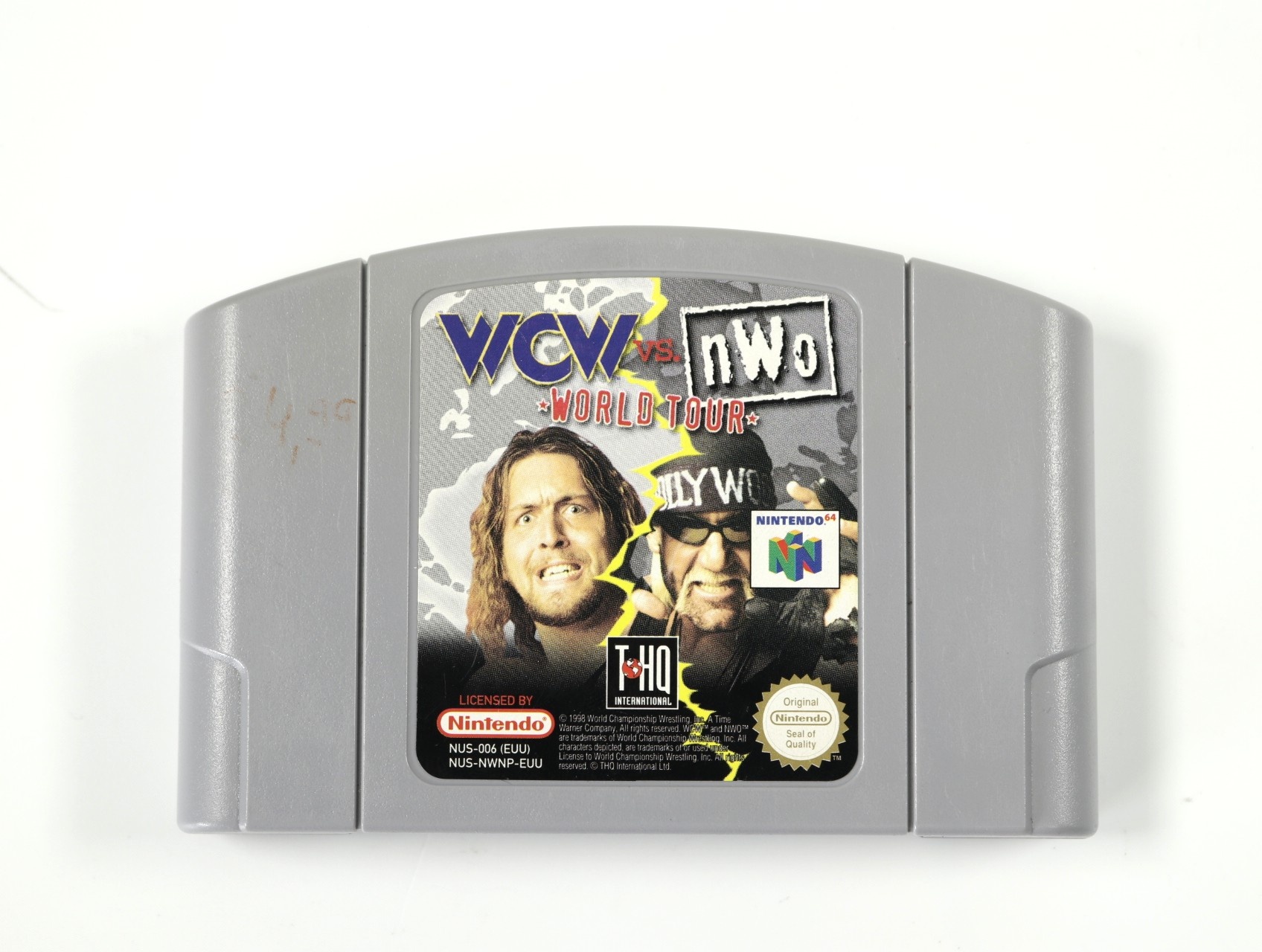 Beschrijving:WCW vs. nWo: World Tour is een professioneel worstelspel ontwikkeld door Asmik Ace Entertainment en AKI Corporation, en uitgegeven door THQ. Het spel biedt een uitgebreide selectie van meer dan 40 worstelaars, waaronder iconen zoals Hollywood Hogan, Sting, The Giant, Lex Luger, Ric Flair en The Outsiders. Spelers kunnen kiezen uit vijf verschillende spelmodi, waaronder tagteamwedstrijden en simultane vier-speler-acties. Elk personage beschikt over 30 tot 40 unieke bewegingen, inclusief kenmerkende afwerkingsbewegingen. Het spel staat bekend om zijn snelle actie en revolutionaire grepsysteem, wat de weg heeft vrijgemaakt voor toekomstige worstelklassiekers. ([en.wikipedia.org](https://en.wikipedia.org/wiki/WCW_vs._nWo%3A_World_Tour?utm_source=openai))