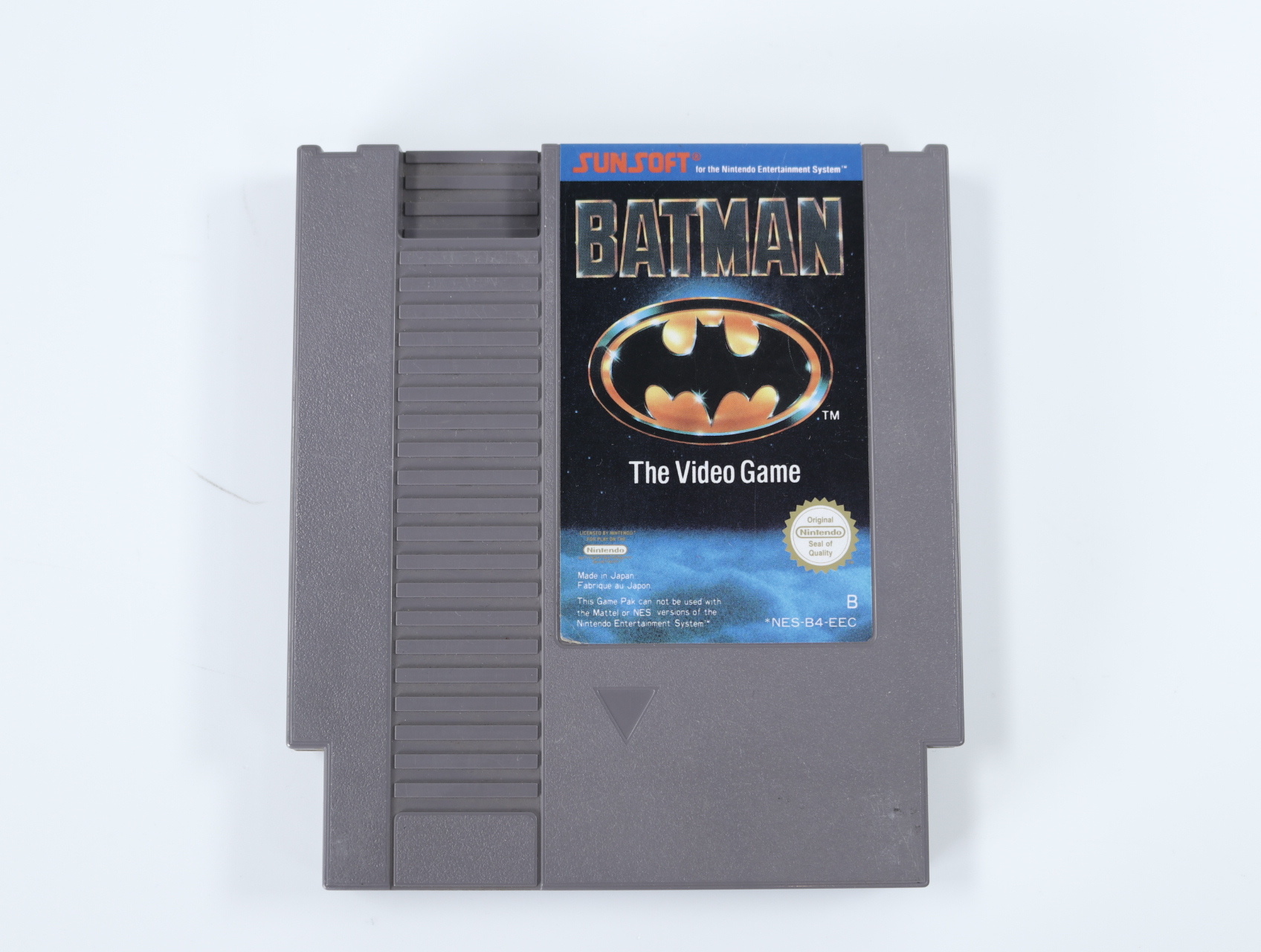 Beschrijving:Batman: The Video Game is een platformspel ontwikkeld en uitgegeven door Sunsoft. In dit spel neem je de rol aan van Batman, die door vijf uitdagende levels vecht tegen iconische schurken zoals de Joker en de Electrocutioner. Het spel staat bekend om zijn donkere sfeer, vloeiende animaties en uitdagende gameplay. Kenmerken zijn onder andere het gebruik van verschillende projectielen zoals de batarang, batdisk en batpoon, evenals de mogelijkheid om van muur naar muur te springen, vergelijkbaar met de mechaniek in Ninja Gaiden.