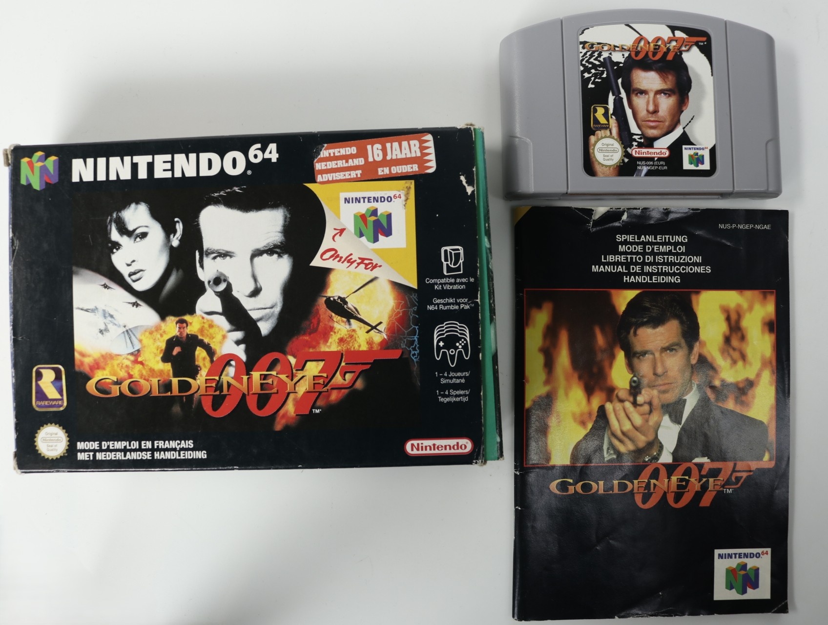 Beschrijving:GoldenEye 007 is een first-person shooter ontwikkeld door Rare en uitgegeven door Nintendo. In dit spel kruip je in de huid van James Bond en navigeer je door diverse missies om een criminele organisatie te stoppen die een satellietwapen wil gebruiken. Het spel biedt een meeslepende sfeer met gedetailleerde omgevingen en realistische animaties. Gameplay-elementen omvatten het gebruik van diverse wapens, het voltooien van missies met specifieke doelen en een multiplayer-modus voor tot vier spelers met verschillende deathmatch-scenario's via splitscreen.