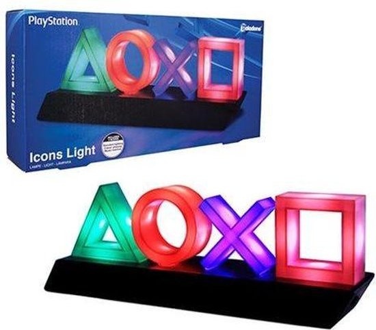 Beschrijving: De Paladone - PlayStation Icons Lamp is een stijlvolle decoratieve tafellamp die perfect is voor elke gamer. Deze lamp is geïnspireerd door de iconische PlayStation-controller symbolen: de driehoek, cirkel, kruis en vierkant. Het biedt een sfeervolle verlichting en is een geweldige aanvulling op elke gamekamer of bureau.