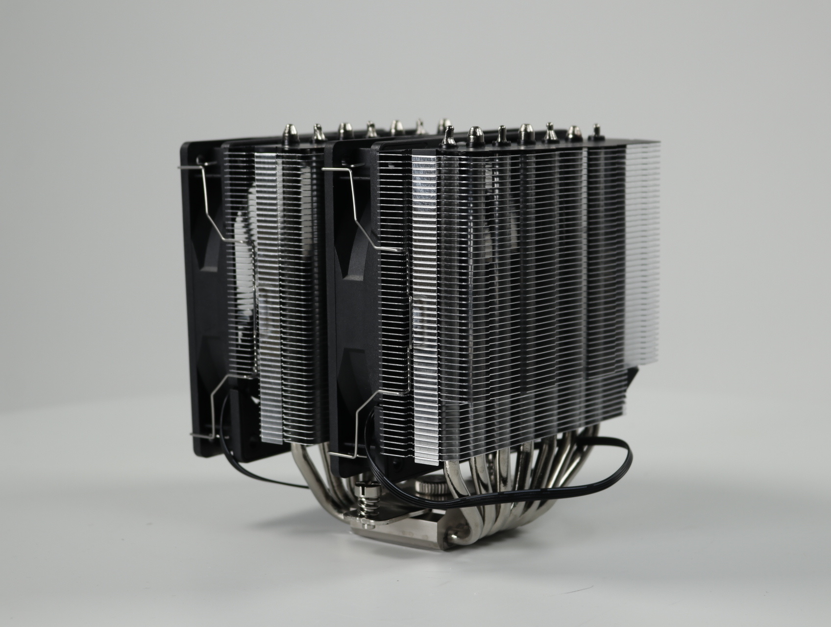 - Belangrijkste specs: 7 × 6 mm heatpipes, vernikkelde C1100 koperen basis, dual‑tower ontwerp, 2 × 120 mm PWM‑ventilatoren (1500 RPM, 66,17 CFM, 25,6 dB(A))