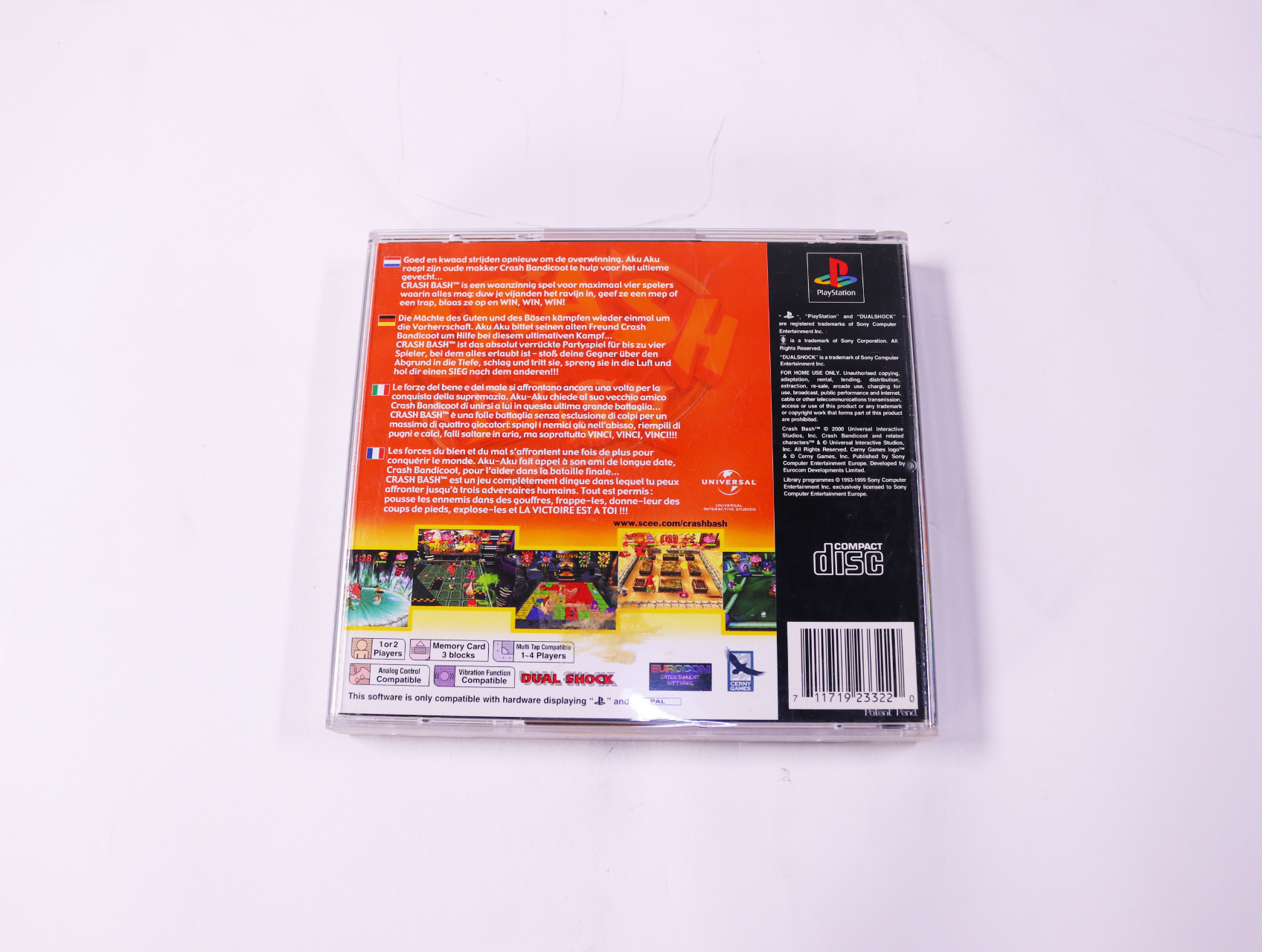 Beschrijving:Crash Bash is een party game ontwikkeld door Eurocom. Je speelt als Crash Bandicoot en zijn vrienden in een reeks uitdagende mini-games. Unieke kenmerken zijn onder andere: multiplayer gameplay, coöperatieve en competitieve modi, en een verscheidenheid aan spelstijlen zoals races, vechtgames en puzzels.