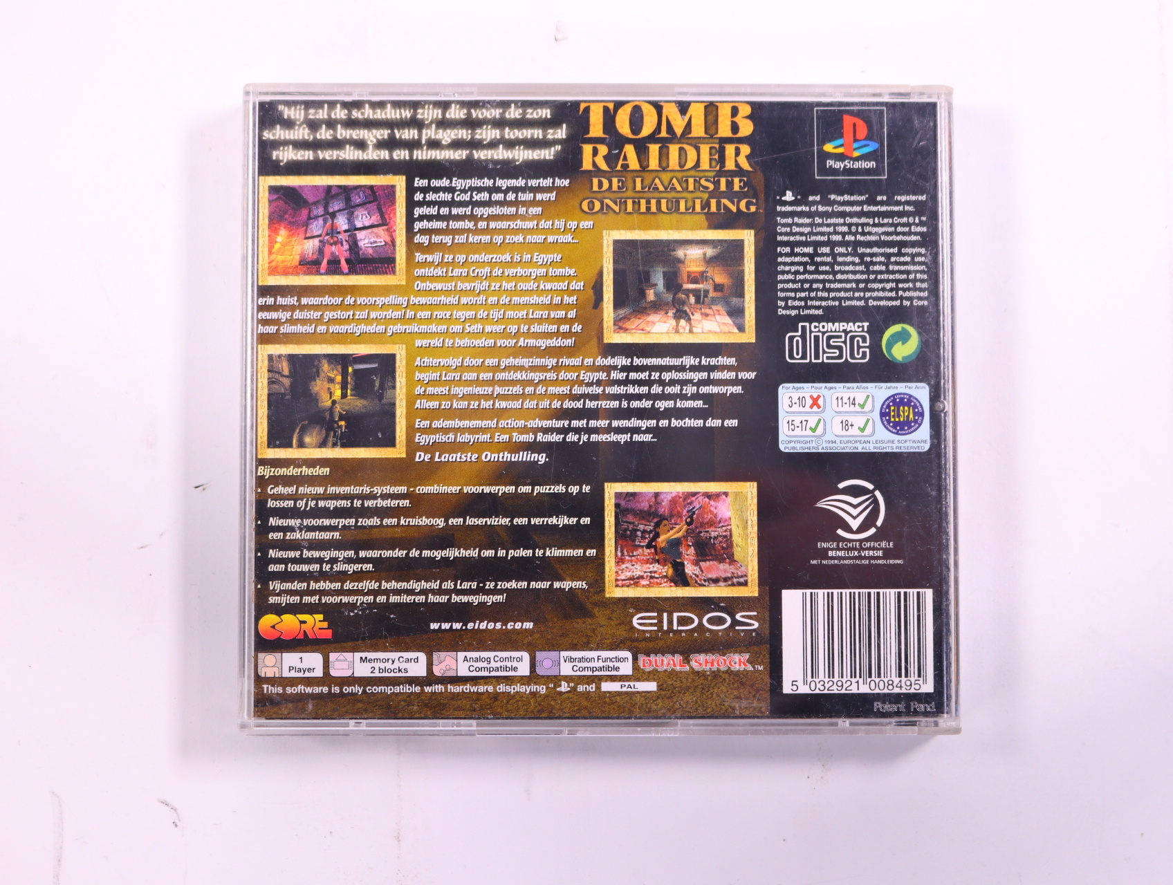 Beschrijving:Tomb Raider: De Laatste Onthulling is een actie-avontuur game ontwikkeld door Core Design. Je speelt als Lara Croft, een dappere archeologe die op zoek is naar de legendarische artefacten. Unieke kenmerken zijn onder andere de uitdagende puzzels, verkenning van indrukwekkende omgevingen en het vechten tegen vijanden met een verscheidenheid aan wapens.