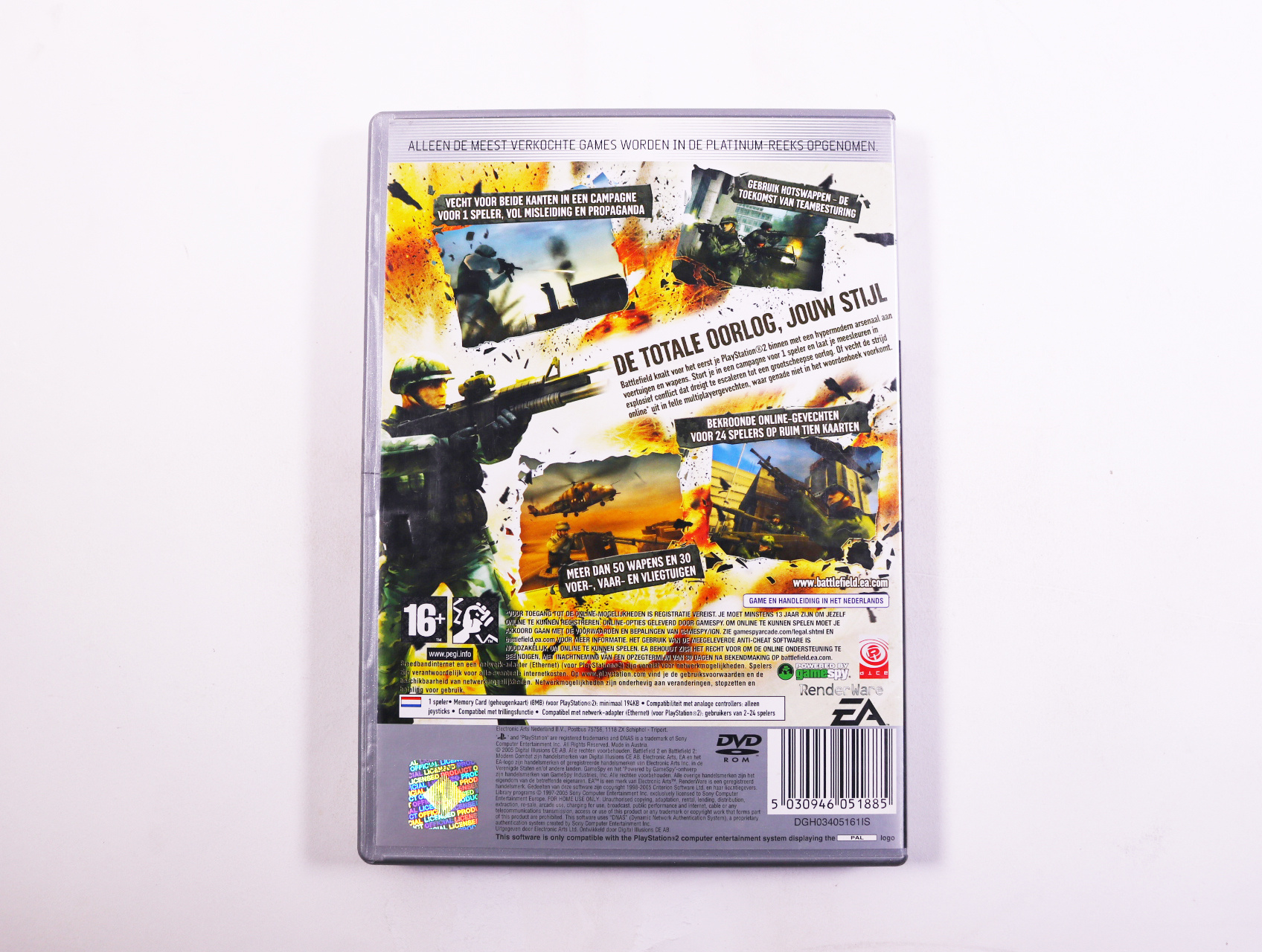 Beschrijving:Battlefield 2: Modern Combat is een first-person shooter ontwikkeld door DICE. Je speelt als soldaat in verschillende militaire campagnes en neemt deel aan grootschalige gevechten met voertuigen en teamgenoten. Unieke kenmerken zijn onder andere destructieve omgevingen, een uitgebreide multiplayer-modus en een realistische gameplay-ervaring.