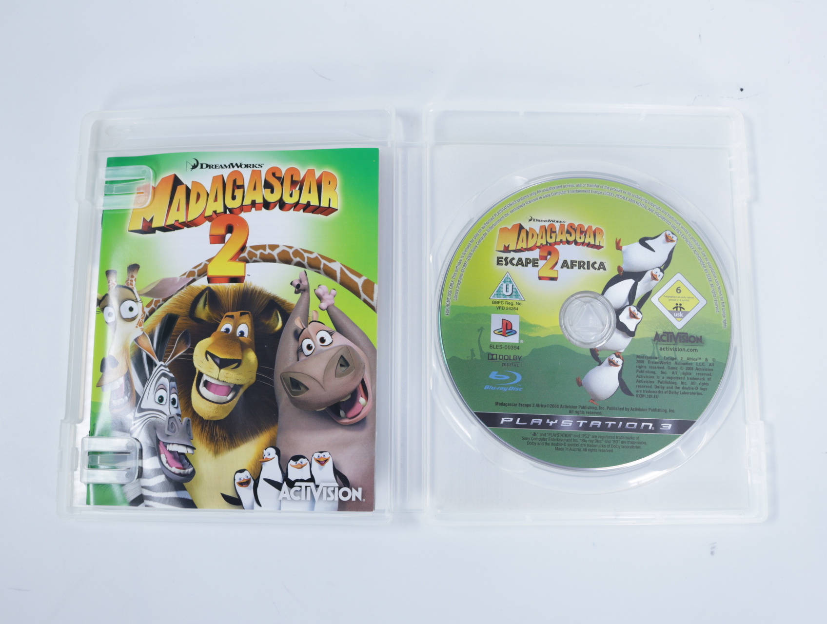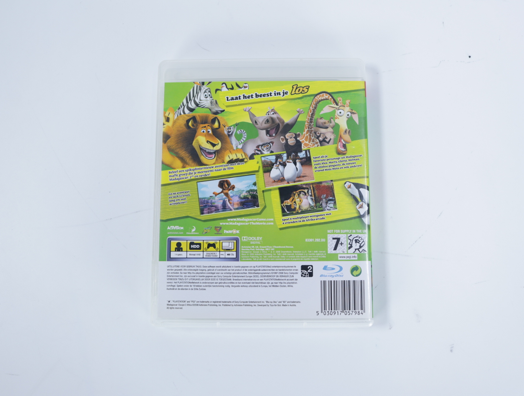 Beschrijving:Madagascar: Escape 2 Africa is een actie-avontuurspel ontwikkeld door Toys for Bob en uitgegeven door Activision. In dit spel nemen spelers de rollen aan van Alex de leeuw, Marty de zebra, Melman de giraffe en Gloria de nijlpaard, die samen op een avontuur gaan om de Afrikaanse savanne te redden. Het spel biedt 12 unieke levels en diverse minigames, waaronder zwemmen, rijden, racen, voetballen en safari-fotografie. Spelers kunnen kiezen uit verschillende personages, elk met unieke vaardigheden en speciale bewegingen, en kunnen samenwerken in een verbeterde multiplayer-toernooimodus. ([gamefaqs.gamespot.com](https://gamefaqs.gamespot.com/ps3/950570-dreamworks-madagascar-escape-2-africa?utm_source=openai))