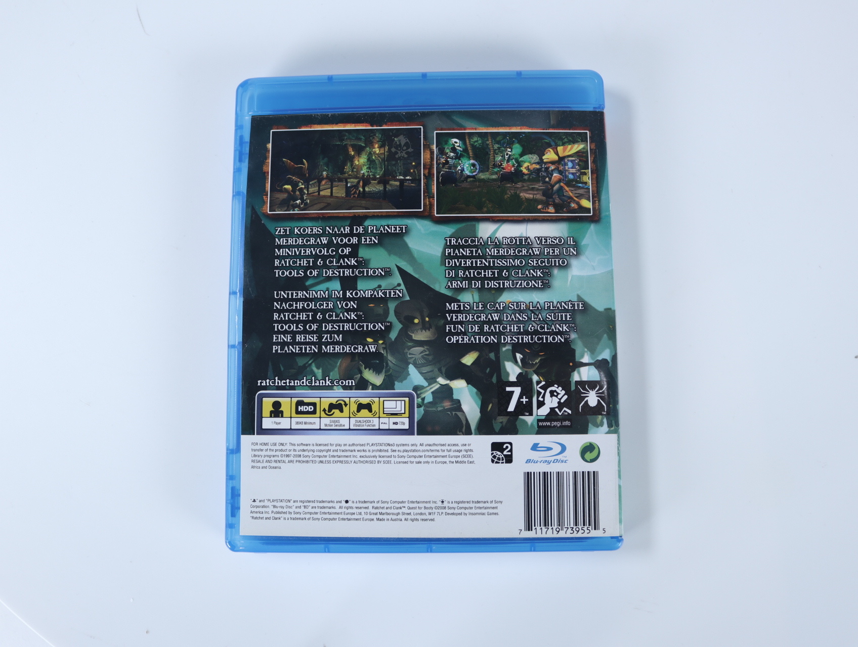Beschrijving:Ratchet & Clank Future: Quest for Booty is een actie-avontuur en platformspel ontwikkeld door Insomniac Games en uitgegeven door Sony Computer Entertainment. Het spel volgt Ratchet in zijn zoektocht om zijn vriend Clank te redden, die is ontvoerd door de Zoni. Spelers navigeren door diverse omgevingen, lossen puzzels op en gebruiken een uitgebreid arsenaal aan wapens en gadgets om vijanden te verslaan en obstakels te overwinnen.