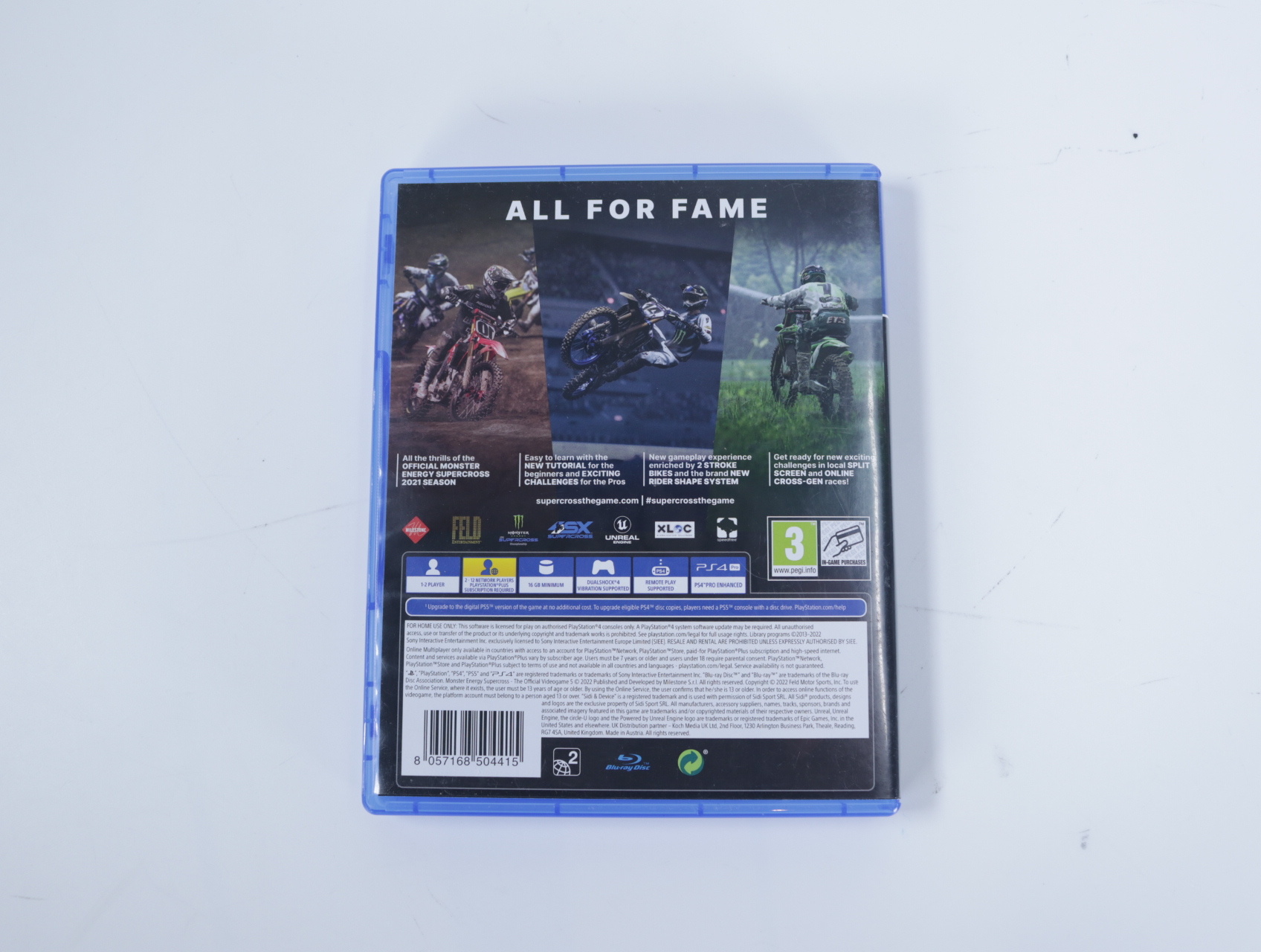 Beschrijving:Monster Energy Supercross: The Official Videogame is een motorracegame ontwikkeld en uitgegeven door Milestone srl. Je neemt deel aan het officiële Monster Energy AMA Supercross-kampioenschap, met authentieke rijders en circuits uit het seizoen 2017. Unieke gameplay-elementen zijn onder andere een uitgebreide carrièremodus, een track editor voor het creëren en delen van eigen banen, en diepgaande aanpassingsmogelijkheden voor zowel rijders als motoren.