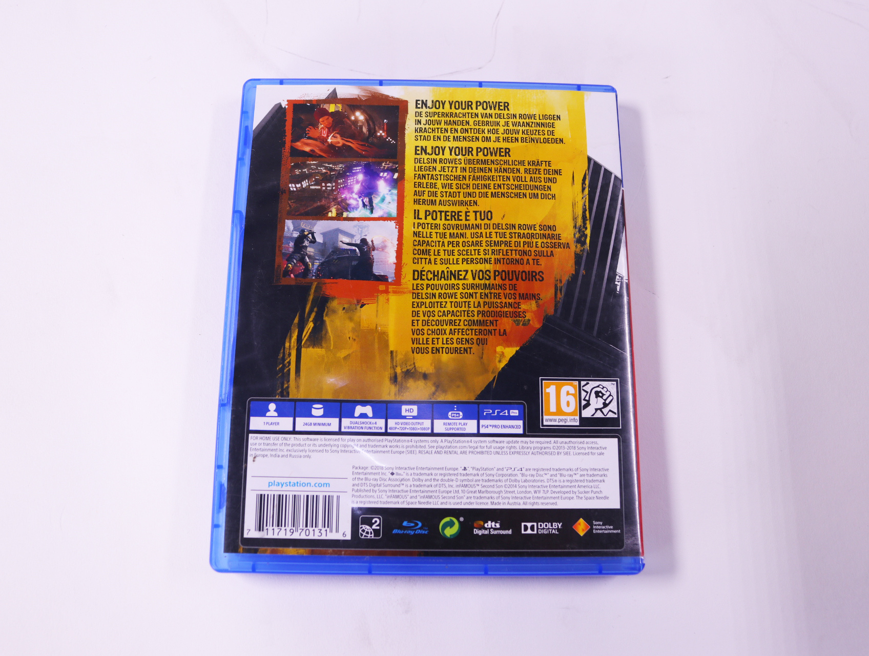 Beschrijving:Second Son is een actie-avonturenspel ontwikkeld door Sucker Punch Productions. Je speelt als Delsin Rowe, een jonge man met superkrachten. Unieke kenmerken zijn onder andere: een open wereld in Seattle, dynamische superkrachten en een meeslepend verhaal waarin jouw keuzes de uitkomst beïnvloeden.