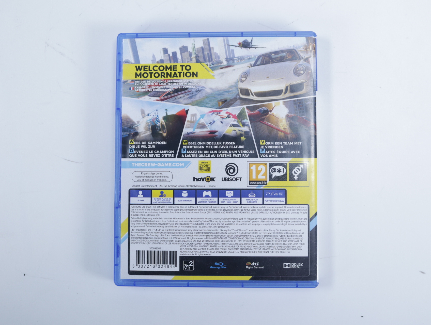Beschrijving:The Crew 2 is een open wereld racegame ontwikkeld door Ubisoft Ivory Tower en uitgegeven door Ubisoft. Je verkent en domineert de Amerikaanse motorsportscene met een breed scala aan voertuigen, waaronder exotische auto's, motorfietsen, boten en vliegtuigen. Unieke gameplay-elementen zijn onder andere het naadloos schakelen tussen verschillende voertuigtypes zonder laadtijden, het verkennen van een uitgebreide open wereld die een verkleinde versie van de Verenigde Staten weergeeft, en het deelnemen aan diverse racedisciplines zoals straatraces, off-road, freestyle en pro-racing.