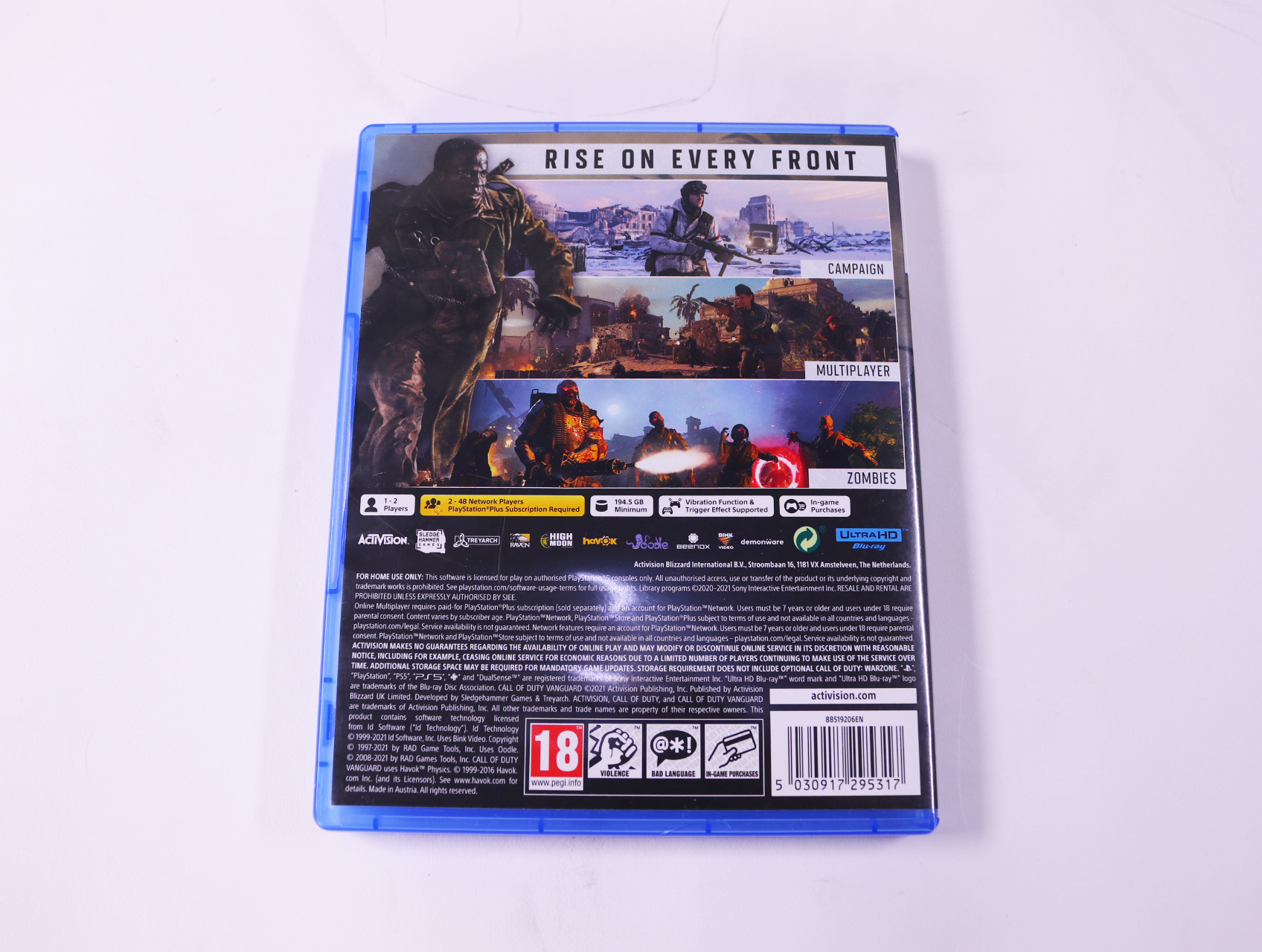 Beschrijving:Call of Duty: Vanguard is een first-person shooter ontwikkeld door Sledgehammer Games. Je speelt als diverse personages in verschillende theaters van de Tweede Wereldoorlog. Unieke kenmerken zijn onder andere: een meeslepende singleplayer-campagne, uitgebreide multiplayer-modi en de terugkeer van de Zombies-modus.