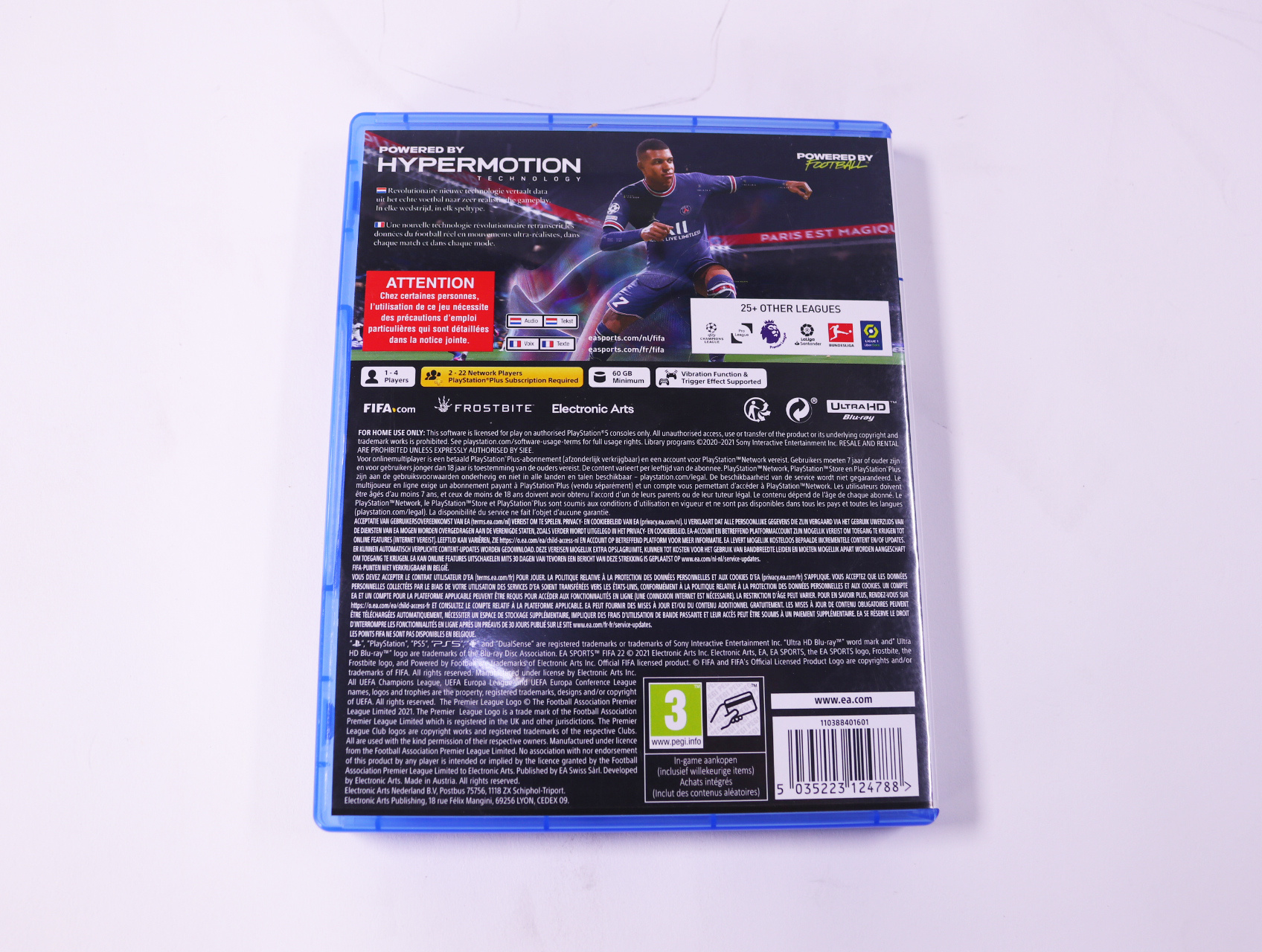Beschrijving:FIFA 22 is een voetbal simulatiegame ontwikkeld door EA Sports. Je speelt als je favoriete voetbalteams en spelers in verschillende competities en toernooien. Unieke kenmerken zijn onder andere: verbeterde AI, realistische gameplay en de introductie van HyperMotion-technologie voor nog meer realisme.