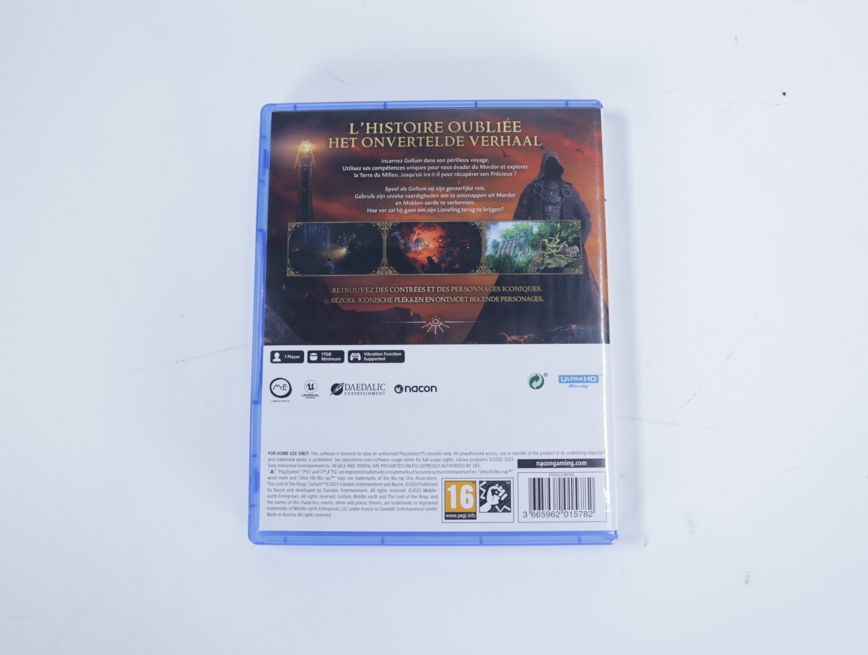 Beschrijving:The Lord of the Rings: Gollum is een actie-avonturenspel ontwikkeld door Daedalic Entertainment en uitgegeven door Nacon. Je speelt als Gollum, een complexe en iconische figuur uit J.R.R. Tolkien's werk, die op een missie is om zijn 'Precious' terug te krijgen. Het spel combineert stealth en parkour-elementen en neemt je mee van Mordor tot de diepten van Moria. Unieke gameplay-elementen zijn onder andere het wisselen tussen de twee persoonlijkheden van Gollum en het navigeren door diverse omgevingen met behulp van klimmen en sluipen.