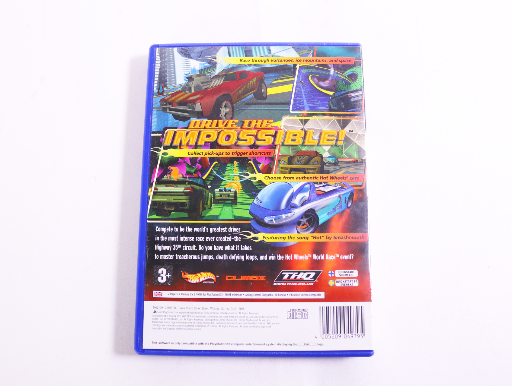 Beschrijving:Playstation 2 - Hot Wheels: World Race is een opwindende racegame ontwikkeld door THQ. Je speelt als verschillende Hot Wheels-auto's en racet op spectaculaire circuits vol met scherpe bochten en spannende sprongen. Unieke kenmerken zijn onder andere de mogelijkheid om je auto aan te passen en verschillende power-ups te verzamelen tijdens de races.
