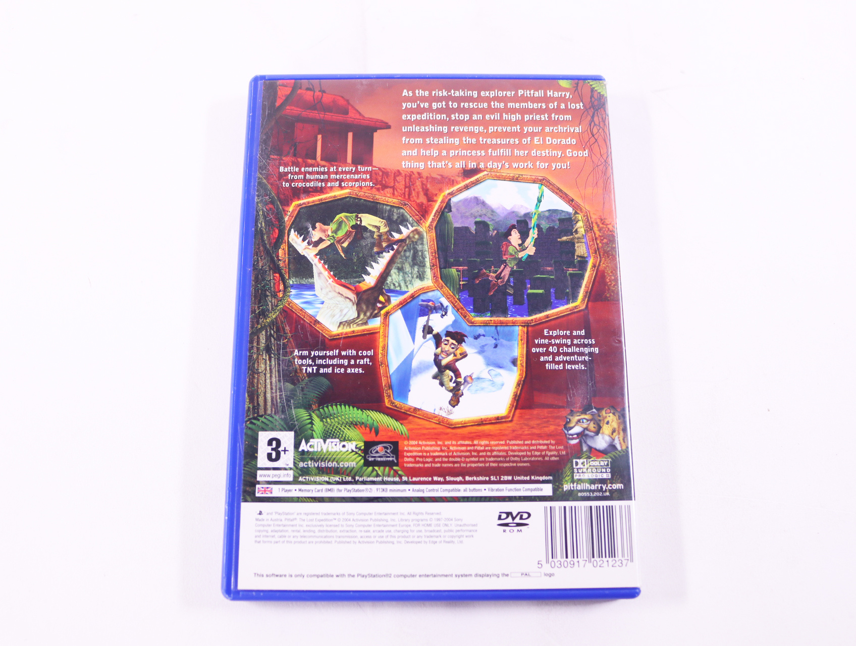Beschrijving:Pitfall: The Lost Expedition is een actie-avonturenspel ontwikkeld door Activision. Je speelt als Harry, een avonturier die op zoek is naar zijn vermiste vriend en de geheimen van de jungle ontdekt. Unieke kenmerken zijn onder andere: uitdagende platform gameplay, diverse puzzels en een open wereld om te verkennen.