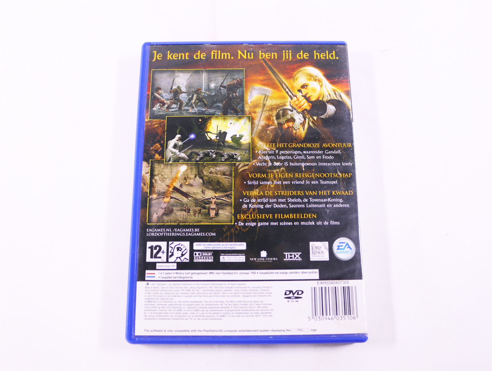 Beschrijving:Playstation 2 - The Lord of the Rings: The Return of the King is een actie-avontuur game ontwikkeld door EA Games. Je speelt als belangrijke personages zoals Aragorn, Legolas en Gimli terwijl je door de epische wereld van Midden-aarde reist. Unieke kenmerken zijn onder andere: coöperatieve gameplay, gevechten met verschillende wapens en een meeslepende verhaallijn die de film volgt.