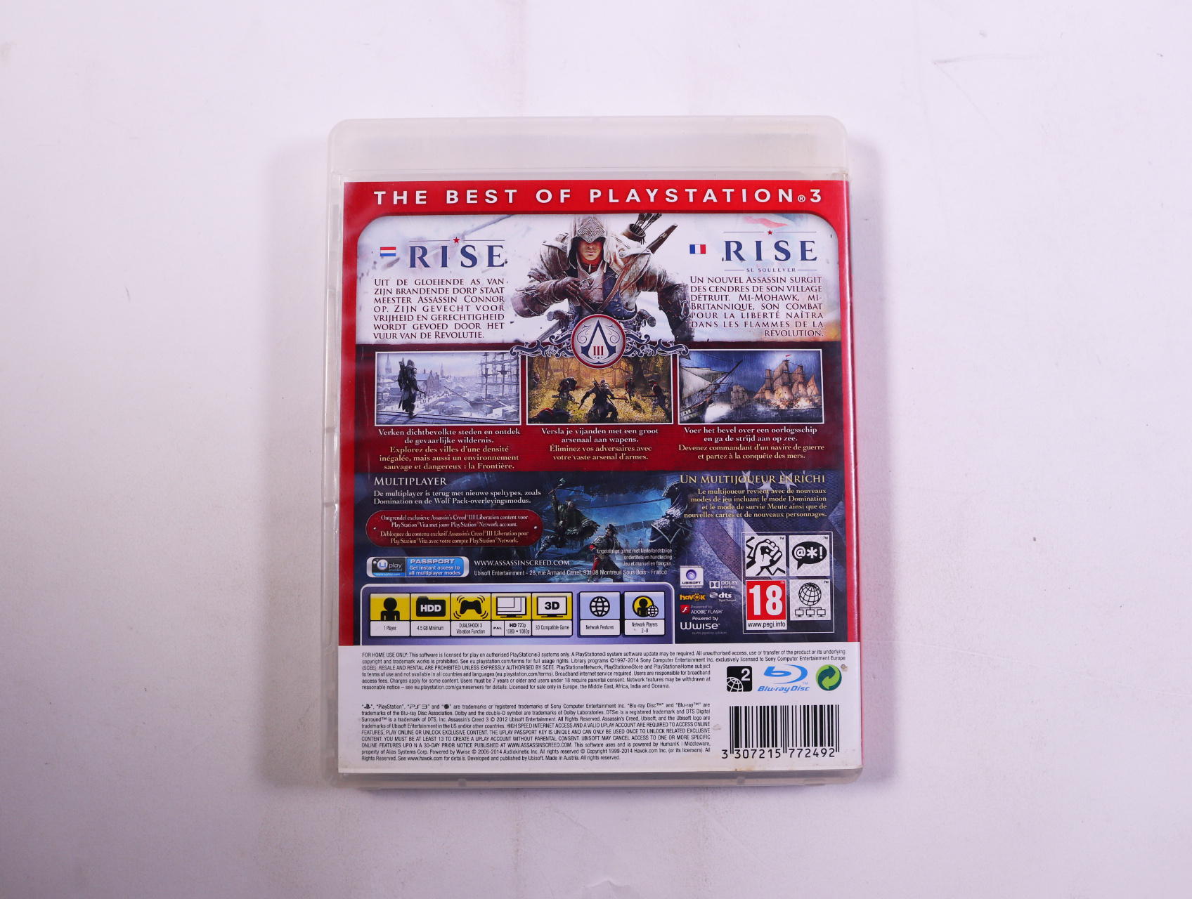 Beschrijving:Assassin's Creed III is een actie-avonturenspel ontwikkeld door Ubisoft. Je speelt als Connor, een inheemse Amerikaan die betrokken raakt bij de Amerikaanse Revolutie. Unieke kenmerken zijn onder andere de open wereld, naval battles en een diepgaand verhaal dat historische gebeurtenissen verweeft met fictie.