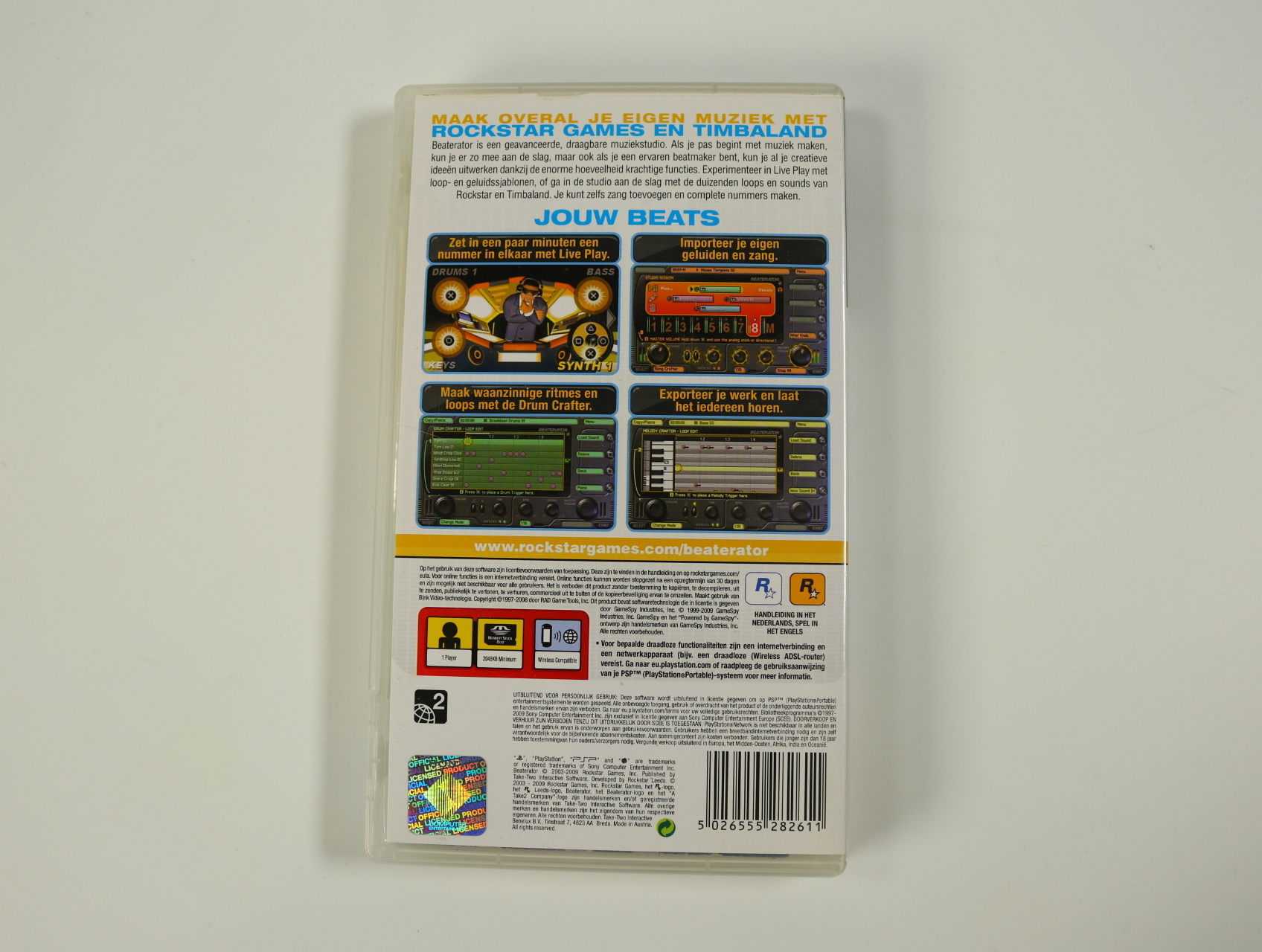 Beschrijving:PSP - Beaterator is een unieke muziekgame ontwikkeld door Rockstar Games. Je speelt als een opkomende muziekproducent die zijn vaardigheden in beatmaking en muziekproductie wil verbeteren. Unieke kenmerken zijn onder andere: een uitgebreide library van geluiden, de mogelijkheid om je eigen beats te creëren en een intuïtieve interface voor het mixen van tracks.