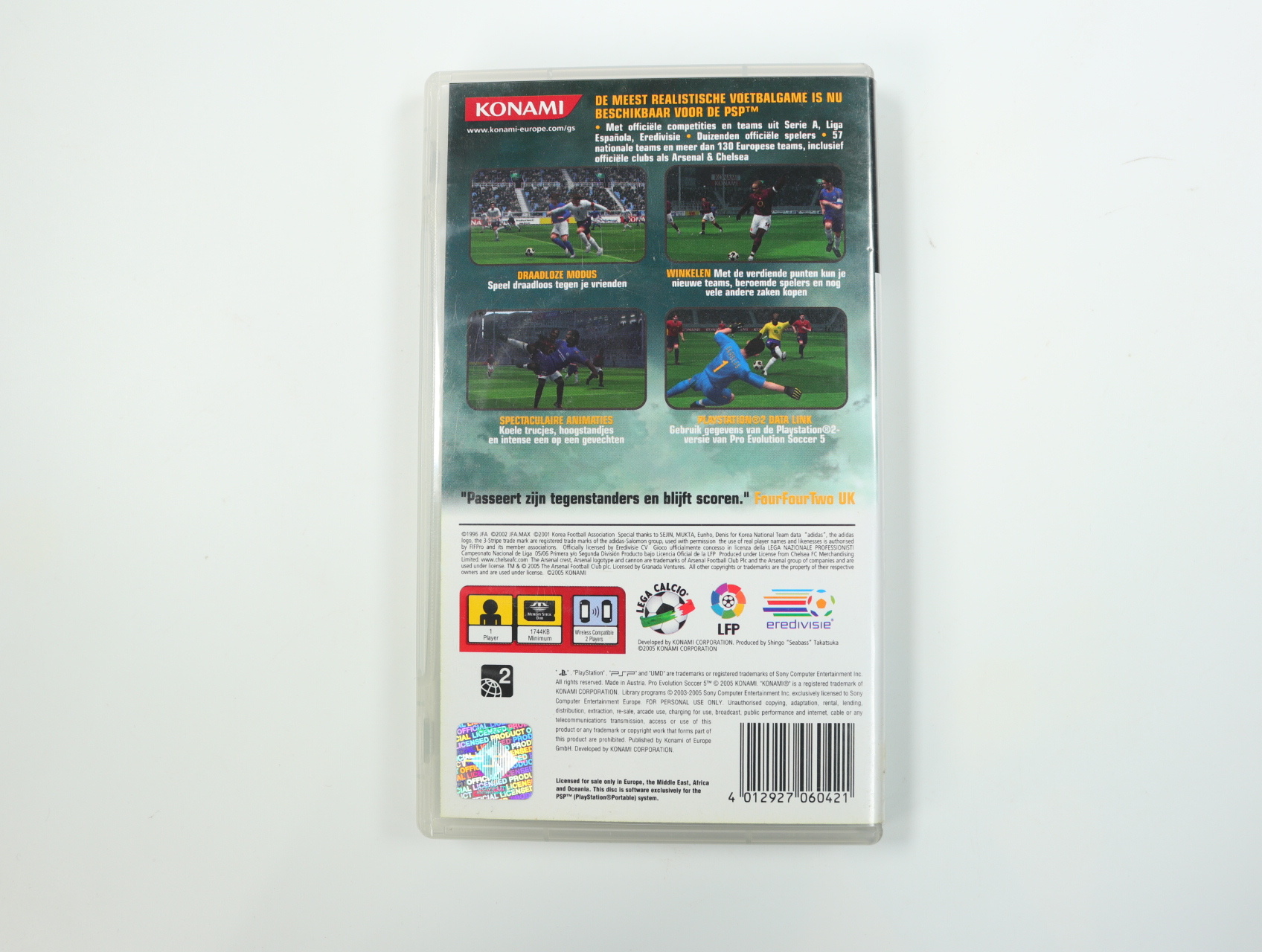 Beschrijving:Pro Evolution Soccer 5 is een sportgame ontwikkeld door Konami. Je speelt als een van de vele topvoetbalteams en neemt het op tegen andere teams in spannende wedstrijden. Unieke kenmerken zijn onder andere de verbeterde AI, realistische graphics en een uitgebreid teammanagementsysteem.