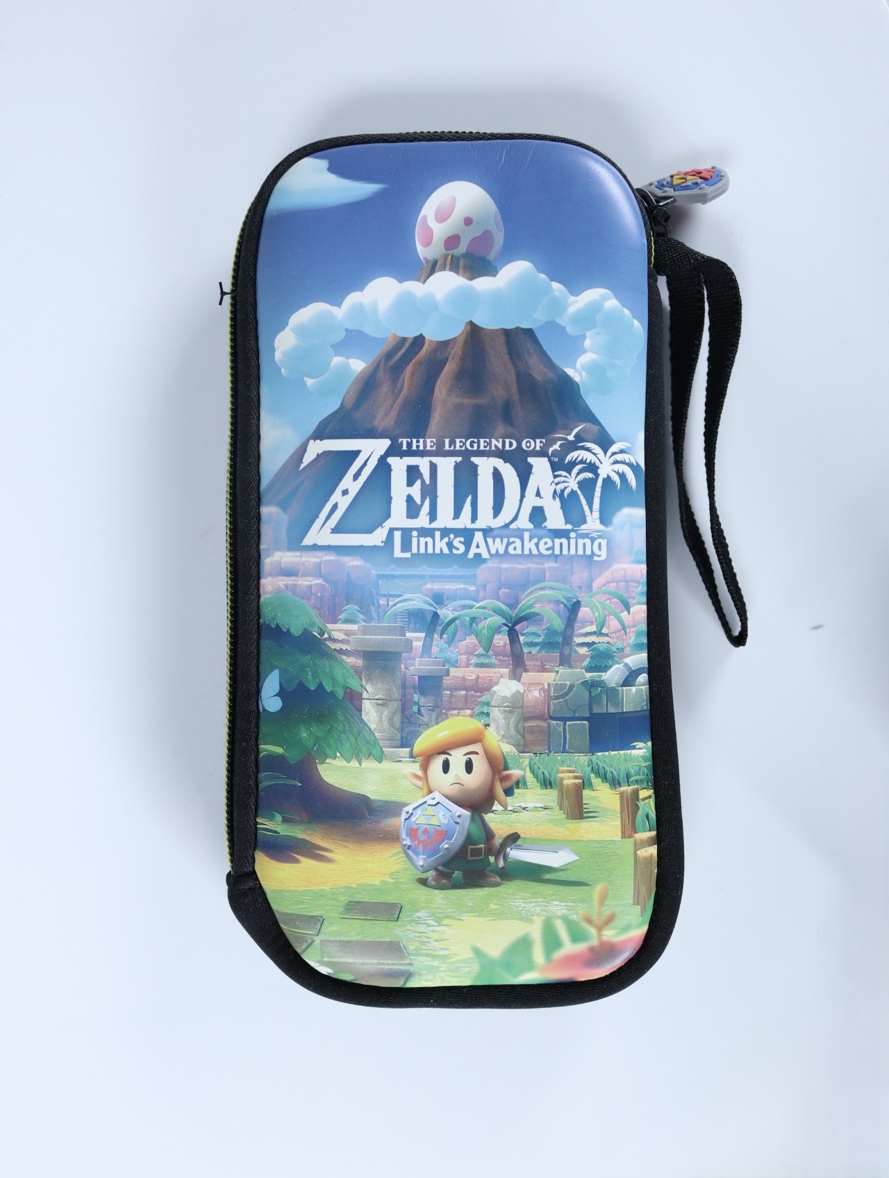Beschrijving: De Nintendo Switch Zelda Link's Awakening Lite Hoes is een speciaal ontworpen hoes voor de Nintendo Switch Lite, geïnspireerd op de populaire game The Legend of Zelda: Link's Awakening. Deze hoes biedt bescherming voor je console en heeft ruimte voor het opbergen van gamecards en microSD-kaarten. Belangrijke specificaties zijn onder andere **materiaal**: 1680D nylon, **compatibiliteit**: Nintendo Switch Lite, **opslagcapaciteit**: tot 4 gamecards en 2 microSD-kaarten, en **kleur**: zwart.