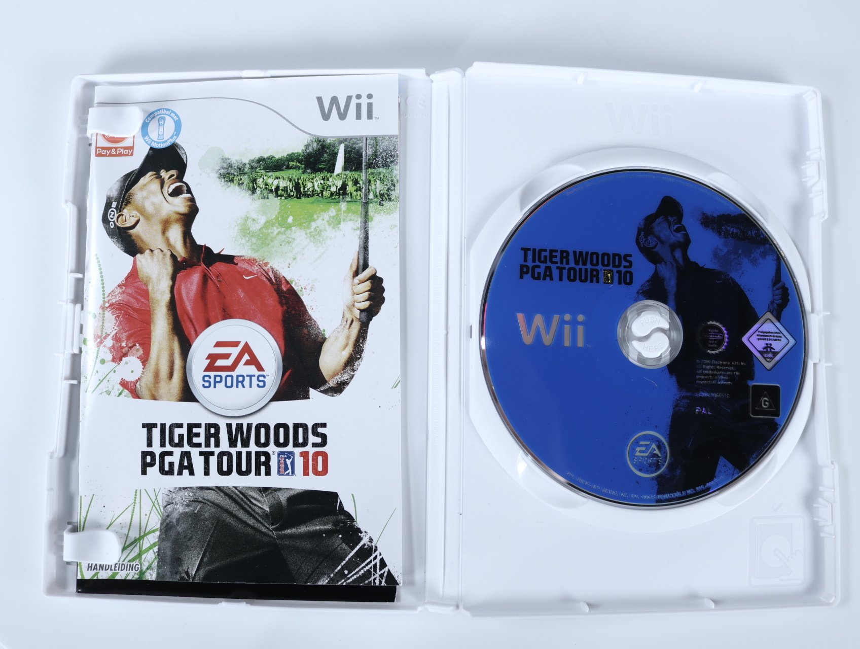 Beschrijving:Tiger Woods PGA Tour 10 is een sportgame ontwikkeld door EA Tiburon en uitgegeven door EA Sports. In dit spel neem je de rol aan van professionele golfers, waaronder Tiger Woods, en speel je op diverse golfbanen wereldwijd. De game biedt realistische swingmechanieken, een nieuw 'Tournament Challenge'-modus waarin je historische golfmomenten kunt herbeleven, en een unieke 'Disc Golf'-modus die exclusief is voor de Wii-versie. Daarnaast ondersteunt het spel de Wii MotionPlus-accessoire voor een nauwkeurige weergave van je golfzwaai.