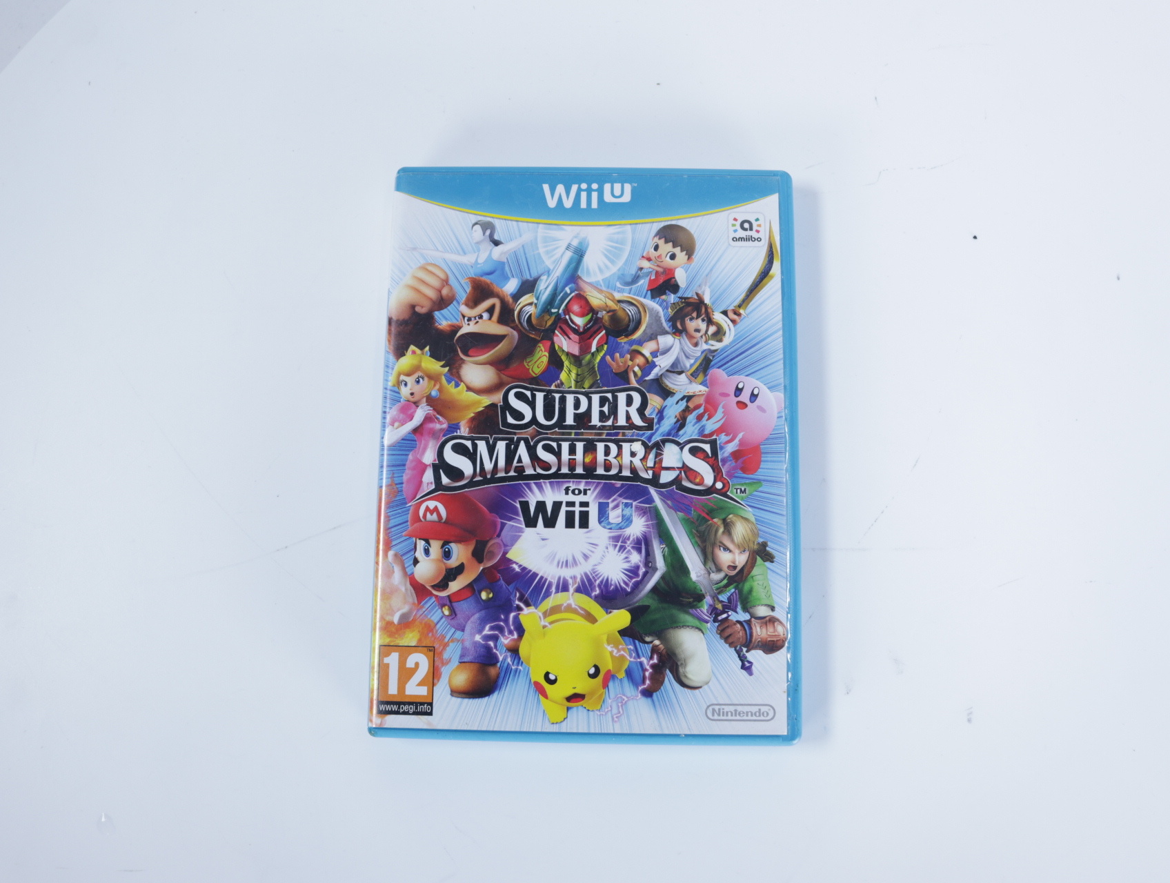 Beschrijving:Super Smash Bros. for Wii U is een vechtspel ontwikkeld door Bandai Namco Studios en Sora Ltd., en uitgegeven door Nintendo. In dit spel nemen spelers het op tegen elkaar met een diverse cast van personages uit verschillende Nintendo-franchises. De gameplay biedt snelle gevechten met een scala aan aanvallen en items, en ondersteunt tot acht spelers tegelijk in de '8-Player Smash'-modus. Spelers kunnen kiezen uit verschillende besturingsopties, waaronder de Wii U GamePad, Wii U Pro Controller, Wii-afstandsbediening en GameCube-controller. Daarnaast kunnen ze hun eigen Mii-personages creëren en aanpassen om mee te vechten. Het spel bevat ook een 'Stage Builder'-modus waarmee spelers hun eigen gevechtarenas kunnen ontwerpen en delen met anderen.