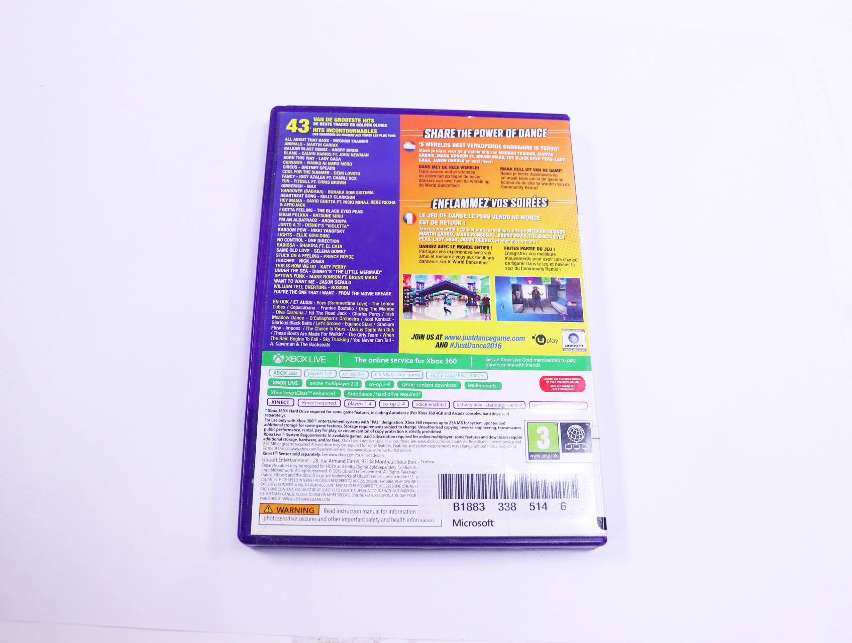 Beschrijving:Just Dance 2016 is een dansgame ontwikkeld door Ubisoft. Je speelt als verschillende dansers en volgt de choreografieën van populaire nummers. Unieke kenmerken zijn onder andere: een uitgebreide muziekcatalogus, de mogelijkheid om met vrienden te dansen via multiplayer, en de Just Dance Controller-app die je smartphone gebruikt als controller.